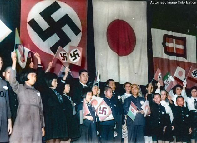 日独伊三国同盟の祝賀会 から80年 登壇した子供たちに笑顔は少なかった カラー化写真 Daily Sun New York